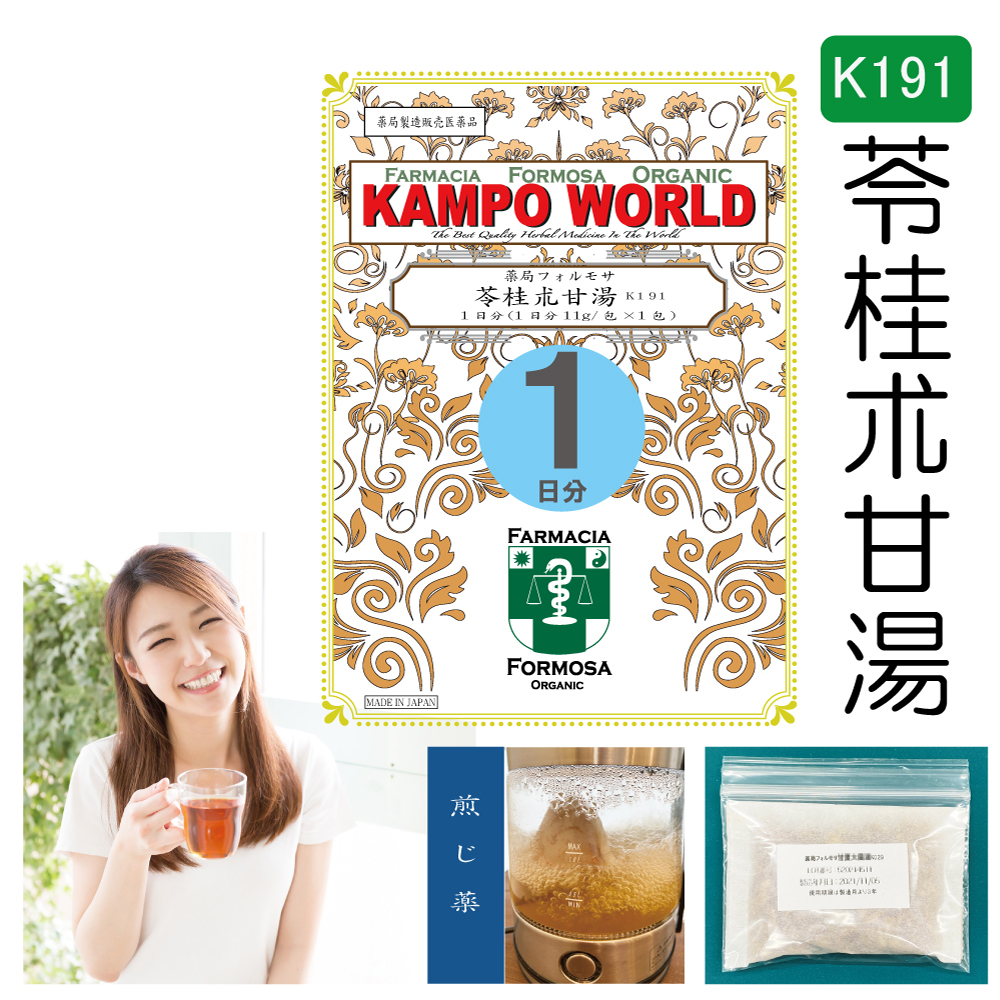 【薬局製剤】苓桂朮甘湯K191(りょうけいじゅつかんとう)煎じ薬 1日分(11g/包x1)立ちくらみ、めまい、頭痛、耳鳴り、動悸、息切れ、神経症、神経過敏【送料無料】