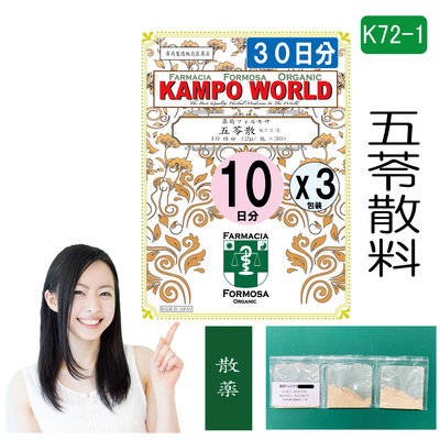 【薬局製剤】五苓散K72-1(ごれいさん)散薬 30日分『10日分(2g/包x30)X3』水様性下痢、急性胃腸炎(しぶり腹のものには使用しないこと)、暑気あたり、頭痛、むくみ、二日酔【送料無料】